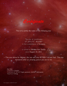 ---This star shines for Melissa, the one and only BFFNW I've ever had. This star represents what an amazing person you are to me.